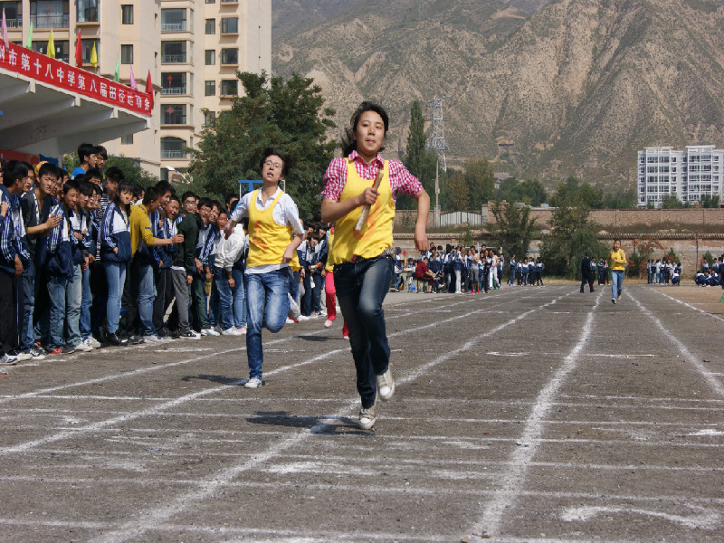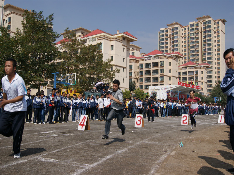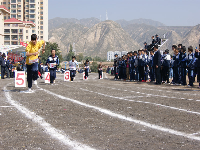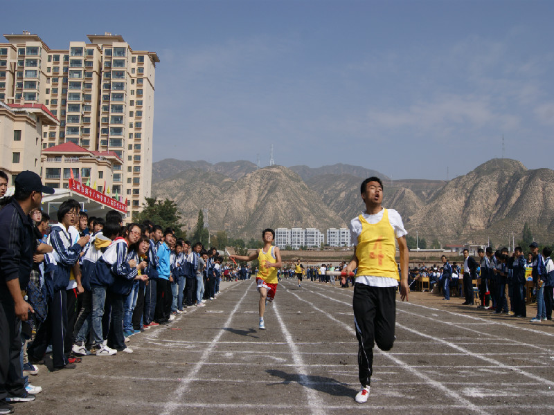 看跑道上挥臂的同学们,鼓足了全身的勇气向前狂奔。跑道成为一条美丽的风景线,不论这条线上的那几个点的距离有多大,只要他们在动,就是最美丽的图像。