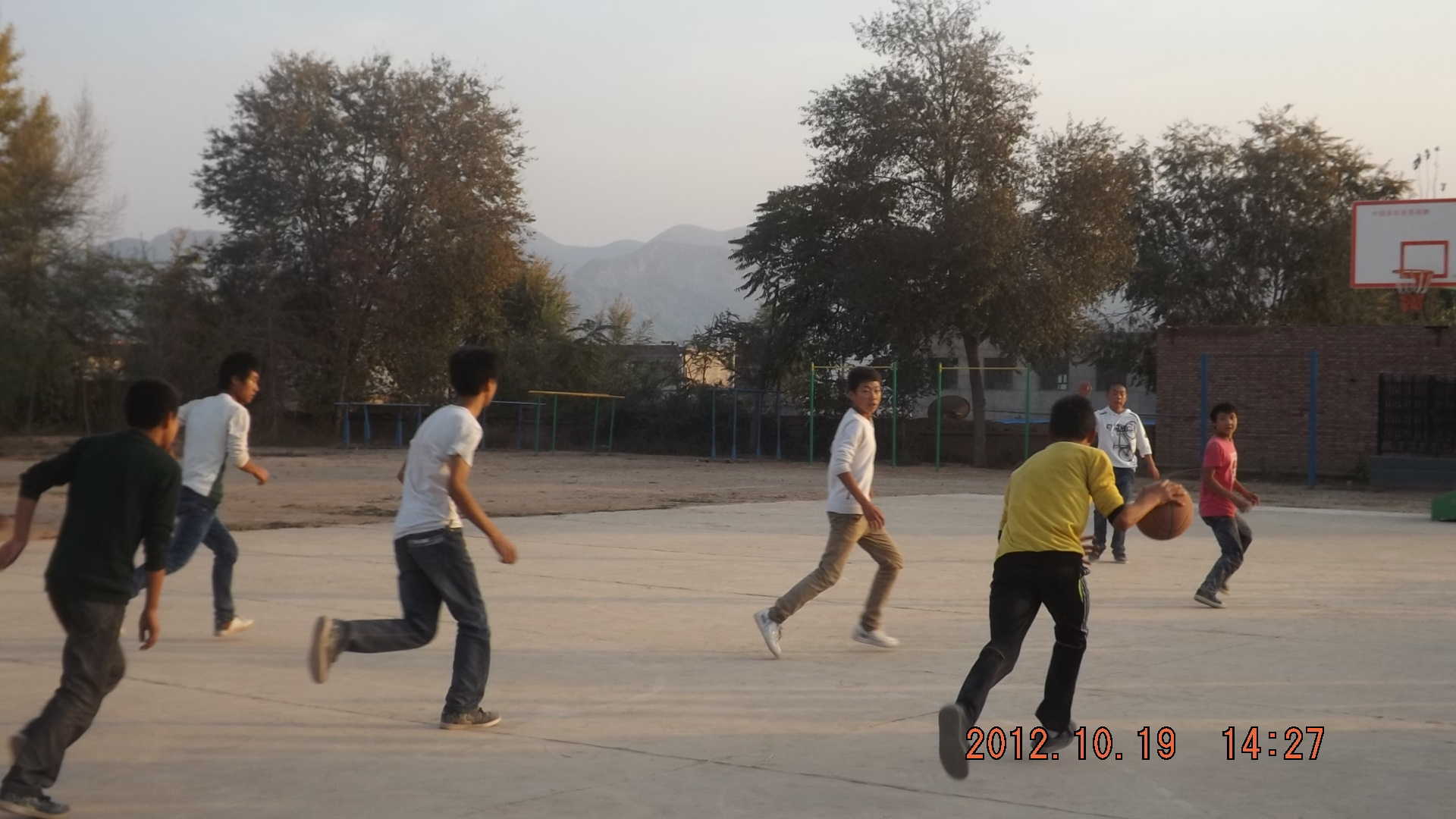 传球、抢断、上篮、得分一气呵成,这就是我们学校举行的秋季篮球赛的场面,虽然我不是上场比赛的队员,但是我也在下面给班里面比赛的场上的同学加油,球场的两边"加油、加油"的声音此起彼伏、震耳欲聋。