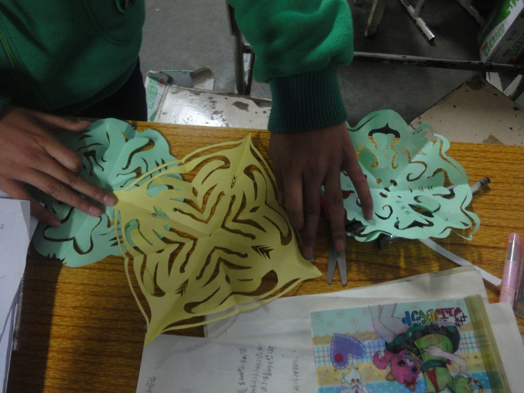 民间剪纸的艺术博大精深,到现在好多地方还流传着剪窗花的习俗。婚嫁迎娶,过年喜庆都要剪窗花,贴窗花。最近我们班里也涌动着一股"窗花风波"。
