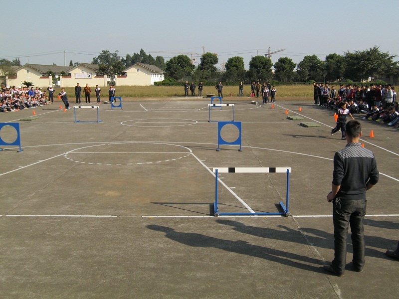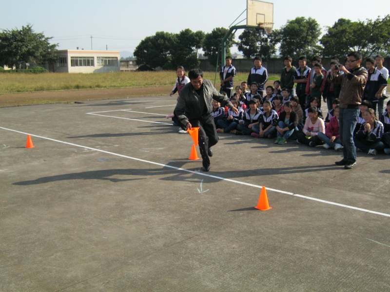 师生共同完成的是"火场运水",每个班由班主任带队,再加两个男生、两个女生共5个人,比赛采用相同或邻近年级进行比赛。