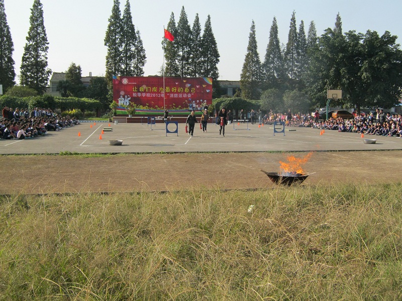 最让我们感兴趣的是今年首次举办消防运动会。既有老师参加,也有学生参加,还有师生同时完成的项目。