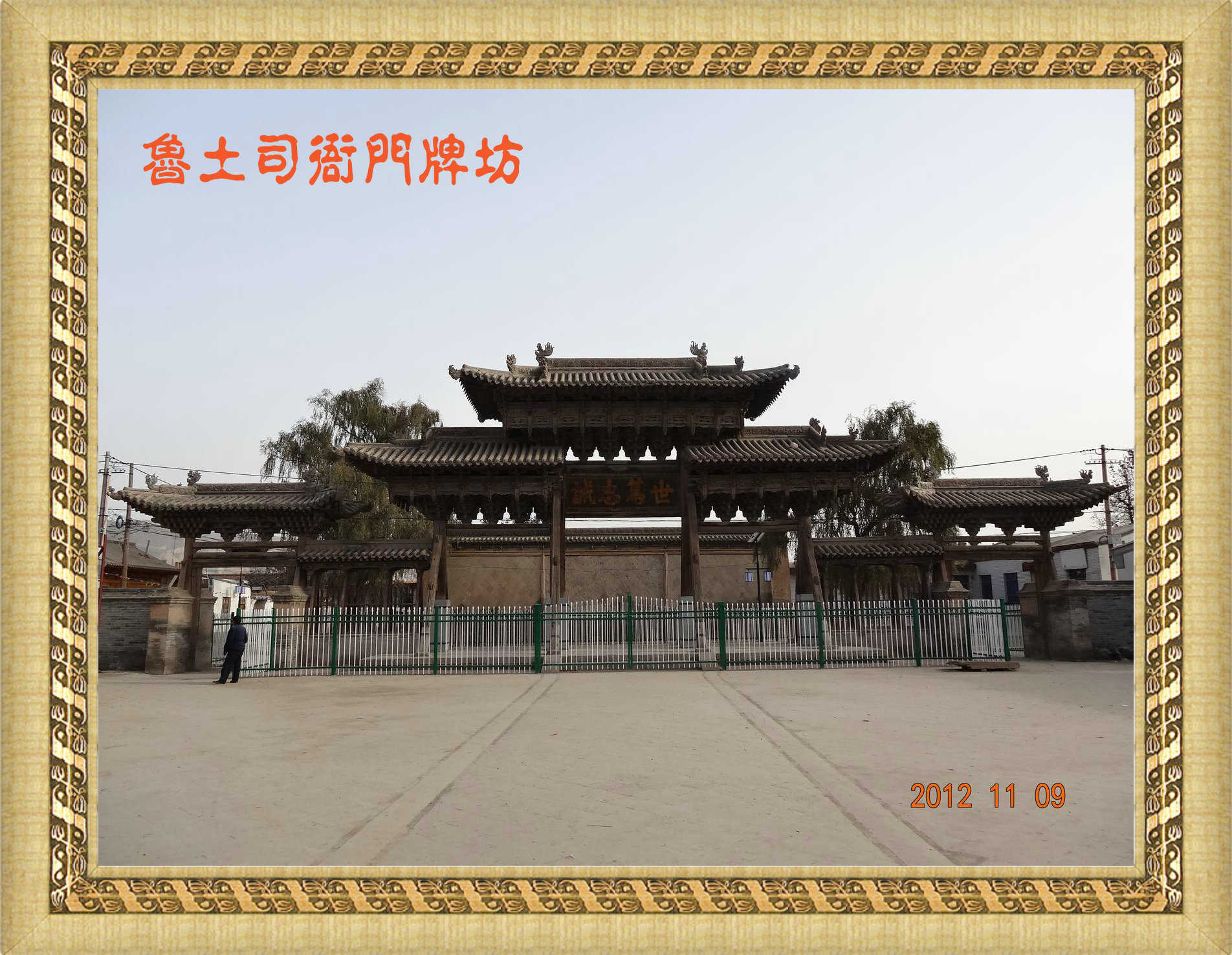 鲁土司衙门是明朝修建的。它分为六大部分,其中衙门和寝衙门的门口建筑上立着一个大牌坊,写着“世笃忠诚”四个大字,它是衙门的标志性建筑。向里走去是六扇门,因“三开六扇”而得名。大堂则在最前方,立着“报国家声”的牌坊。二堂则在大堂的后面,分为前、中宅院。旁边是燕喜堂,它是明代专门接待客人的地方,似清朝的养心殿,里面还有“土地暖”。在六百年前,我国还没有暖气,人们便发明了“土地暖”,这是我国劳动人民智慧的结晶。