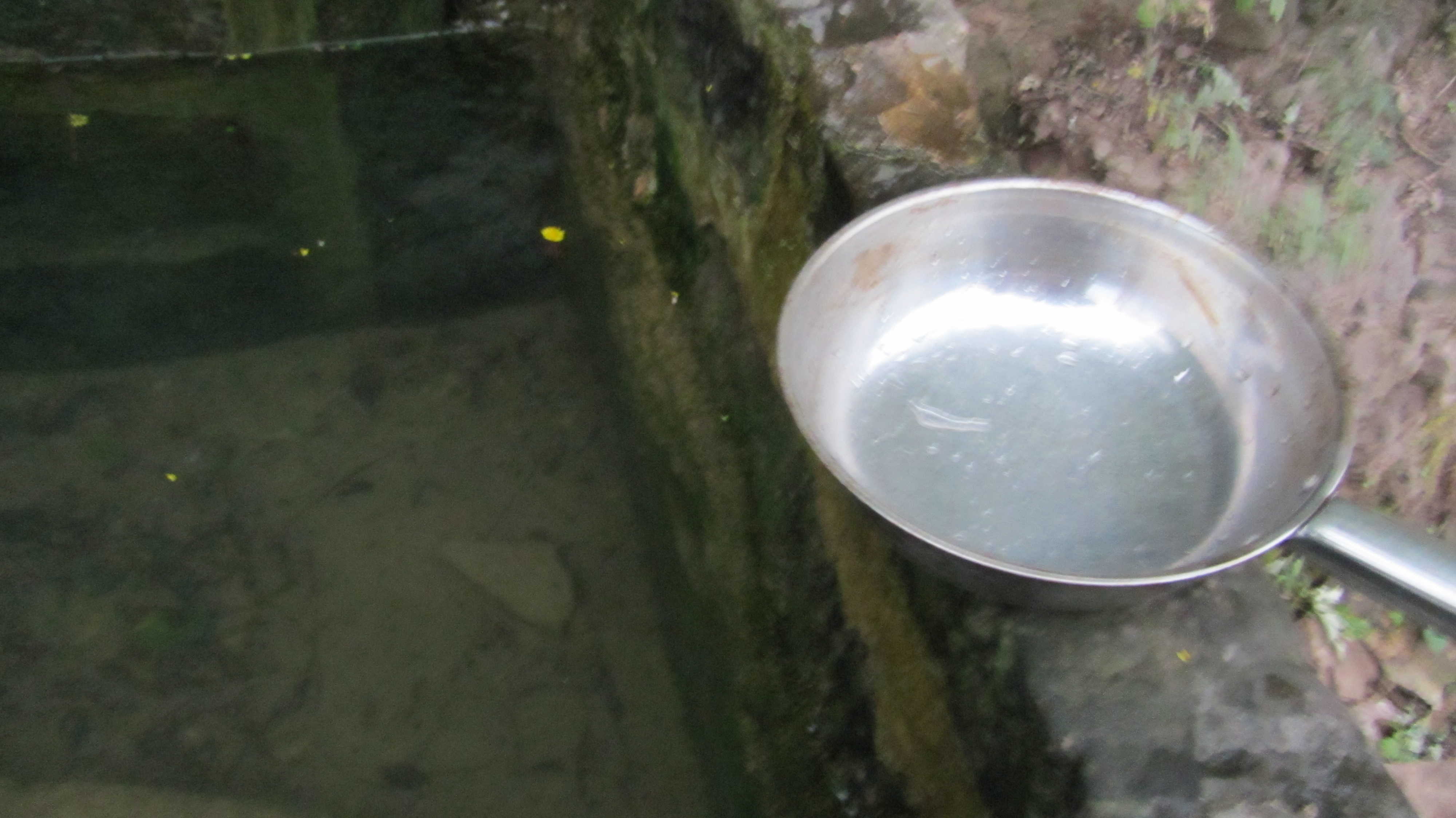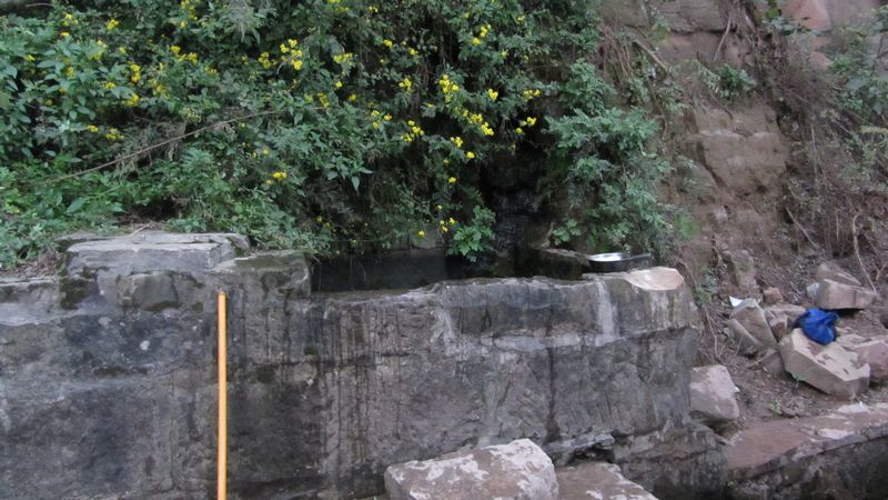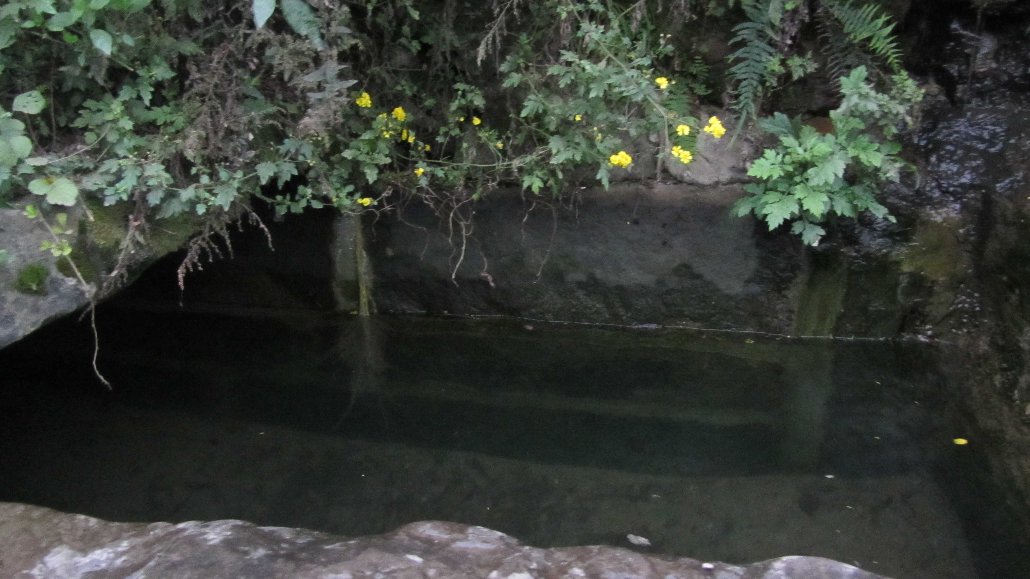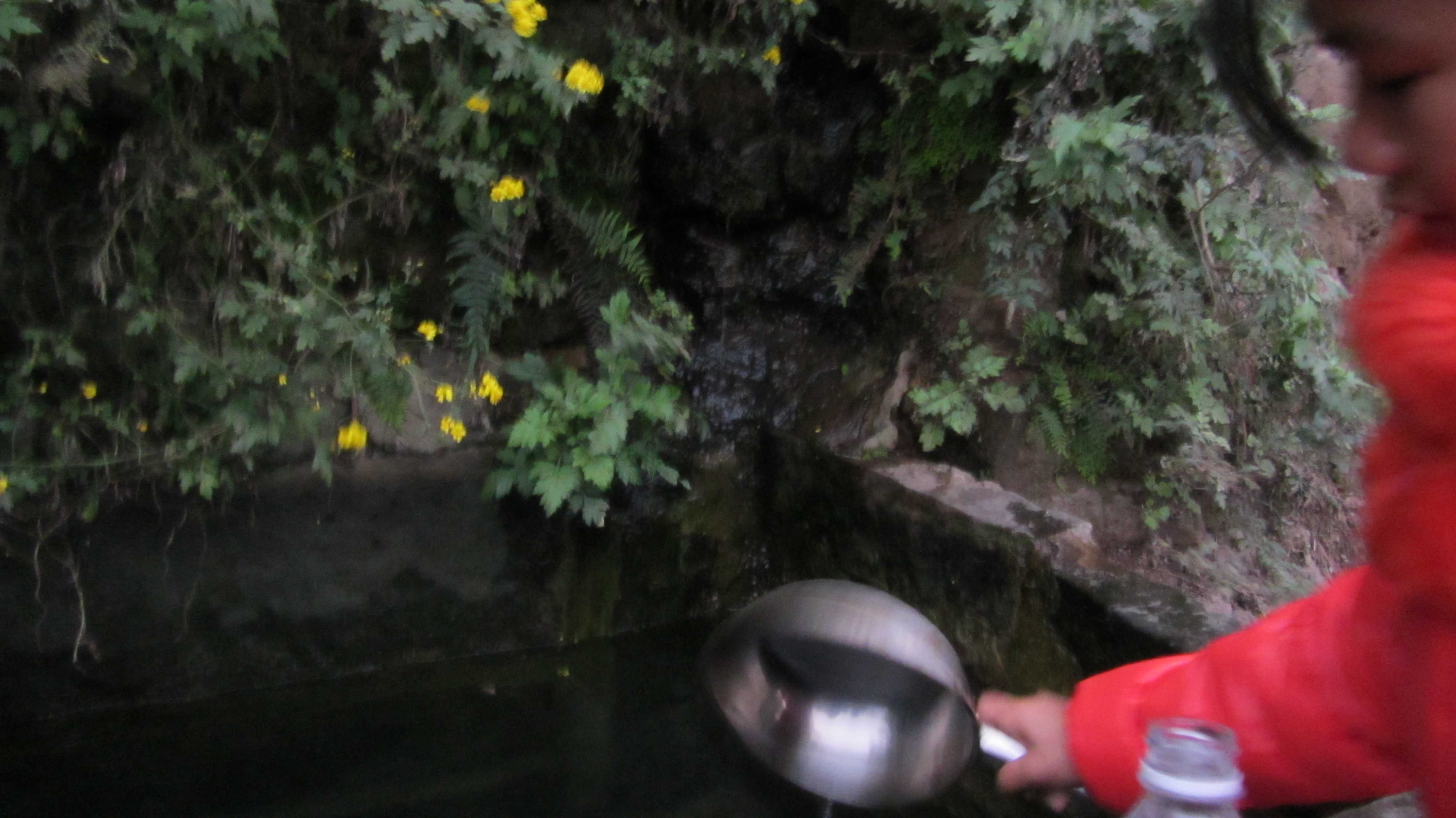 这口井位于山脚下,又在公路旁边,为了方便过往行人,村里人就在井边放了一把瓢,谁口渴了,盛起就可以喝,村里人的朴实,善良就像这口井一样,给大家带来了方便,却也绝口不提。现在是冬天,水井旁开满了鲜花,黄黄的,香香的,把这口井装点得格外亮丽,成了这寂静荒野的一个亮点。井水很清澈,井底的沙石清晰可见,这井水可是绝对的纯天然,原生态,你瞧,一道细细的水沿着石壁流下,这是沁水,要是在夏天喝上一口,那才是真正的透心凉啊,只一口就可以消去炎热的暑气。夏天,村里的小伙伴都爱到这里盛水,这就是大家的"农夫山泉"。