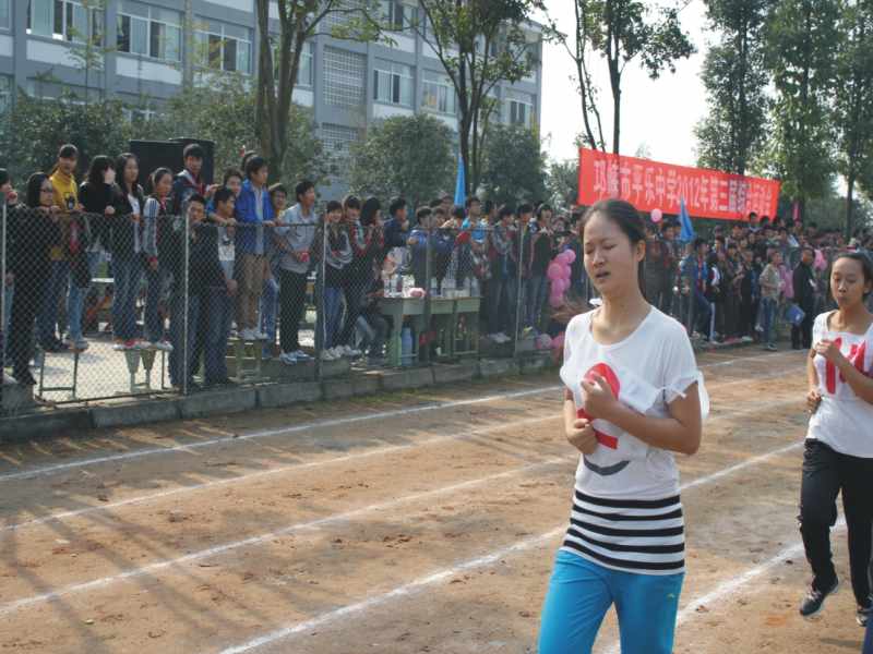 比赛一场又一场的过去了,眼看着离我的个人项目"女子800米"越来越近,我也越来越紧张不安,身体还不由自主的开始颤抖,双腿直发软,原来对于拿名次没敢抱多大希望,看到眼前这些一个比一个厉害的对手,心里更是没有底了,本以为是6个人一组的小组赛,结果没想到竟然是15个人一起跑……上赛道了,看到那么多的人在为自己加油打气,心里真的好开心,只听枪声一响,800米赛程真的开始了,当跑了一半的时候,我似乎就快没力气再跑下去了,但我知道,不论怎样我都要坚持跑到终点,就在这时,我的好朋友和班上的同学都来陪我一起跑,那一刻真的好感动,而且一路上跑着都会听到同学们的呐喊。