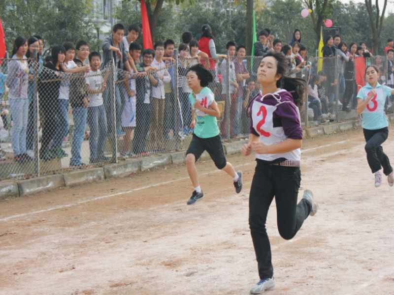 最先开始的比赛项目是百米赛跑。别看平时都文质彬彬的,只听发令员老师枪声一响,一个个像战场上急驰的骏马似的,努力的奔向终点,站在赛道两旁的啦啦队也铆足了劲为运动员们加油呐喊.