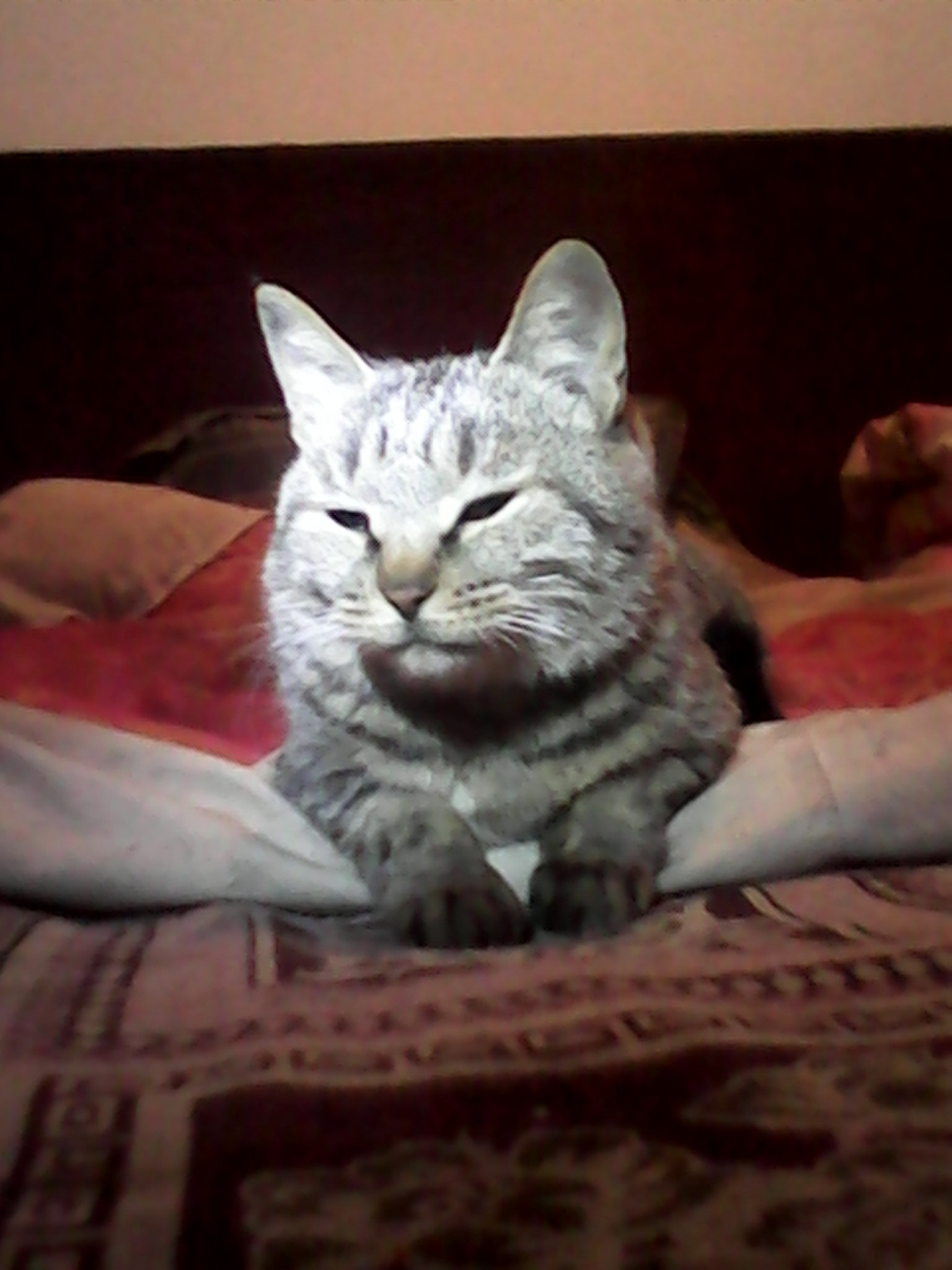 小咪有一身灰色的毛,胖胖的身材,不管谁看到小咪,都会说可爱。小咪来我家快九年了。