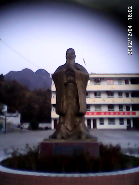 刚踏入校园,你除了会看到宽敞的水泥操场,还有一个特别的建筑物——孔子像。它高约2至3米,一座由石头雕刻而成的石像。全身用金黄色的漆刷成。雕刻的很精致,仿佛连孔子身上的褶皱都看的清清楚楚。每天同学们活动时,都能看到拿着书的孔子伫立在操场中央,日复一日,年复一年,伴随着同学们成长。