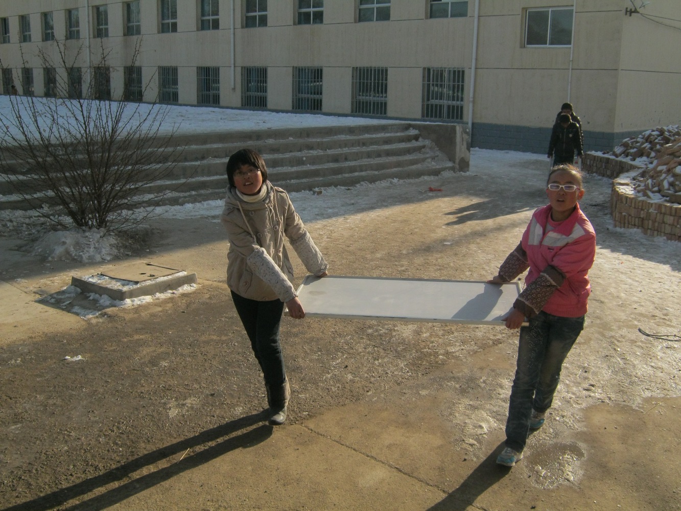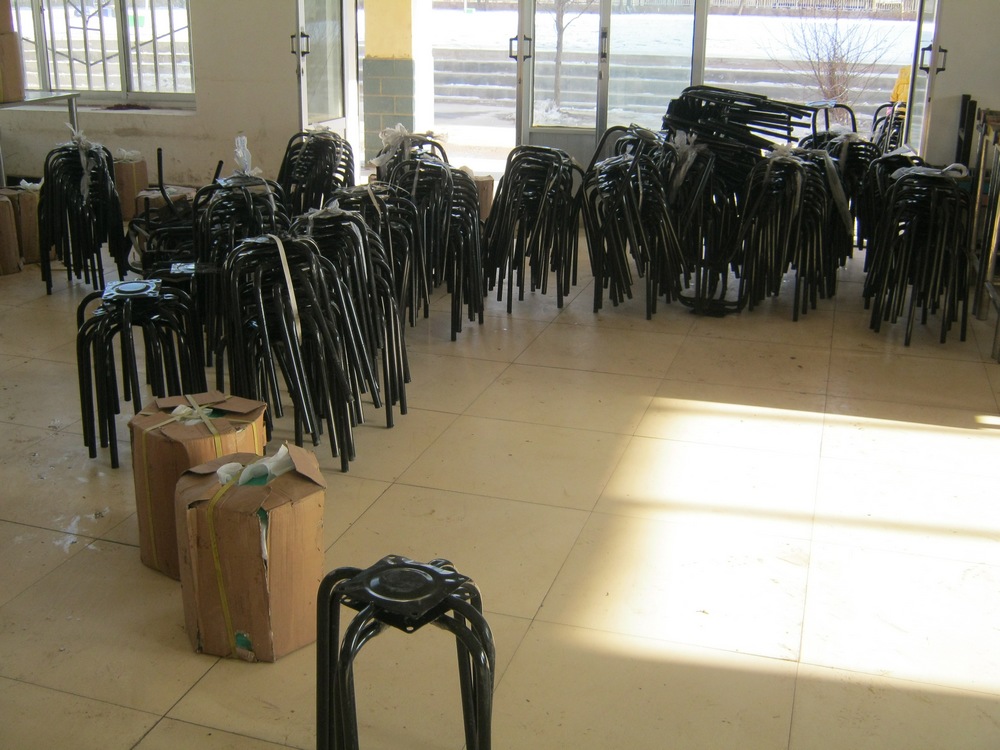 今天,在县教育局组织下,由中标单位将设备运送到我校。师生们一起将这些来之不易的设备小心翼翼地搬到餐厅。