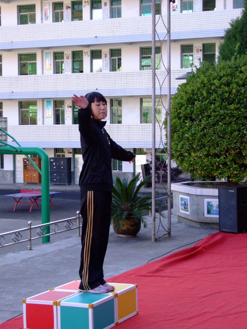 首先,两个主持人意气风发,精神饱满的走上舞台,以严肃响亮的声音选布了本班次半个比赛开始第一个班级是二(4)班以统一的服装,整齐的步伐,我们激动不已,他们的班歌是《一二三四歌》,以响亮整齐的声音震醒了台下的观众,操场下一片激烈的掌声。