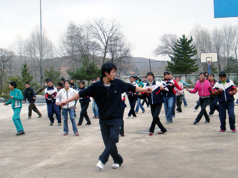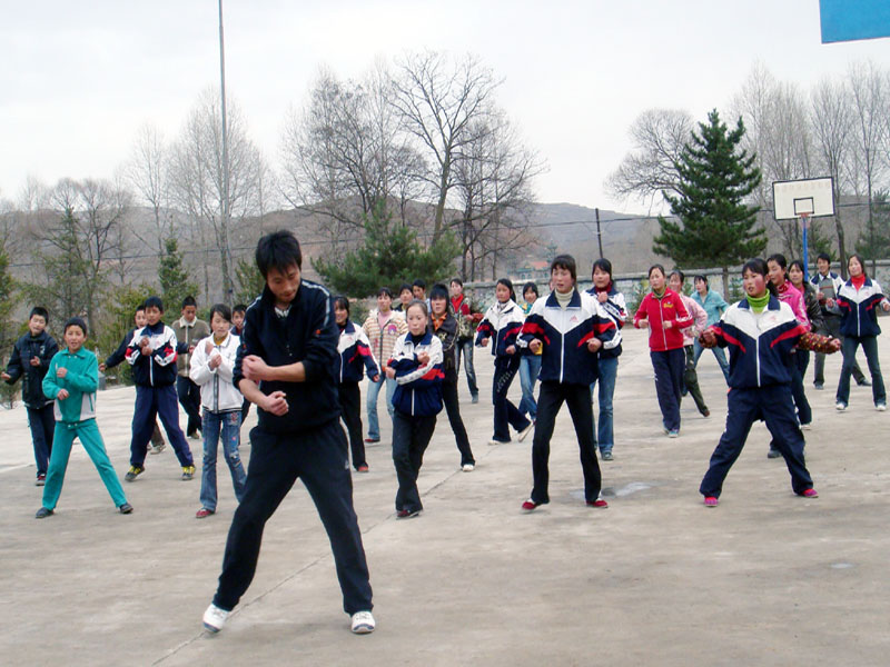 同学们都来自农村,可能因为平时不是很好动,好多动作模仿起来肢体显的很生硬,一招一式和老师相比看起来不是很有形,但大家都很认真,都很努力!