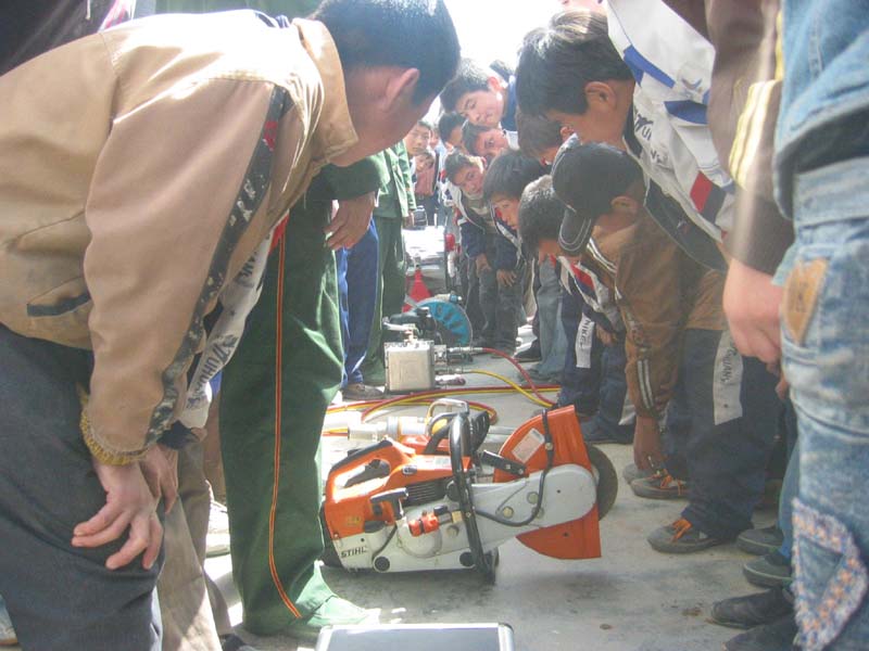 最后,消防员叔叔摆出了他们所有的家当,同学们看着这些稀奇的东西,都忍不住聚拢过来,发出一声声的赞叹!通过这次消防演练,使全校师生都增强了防火安全意识,学到了许多安全方面的知识。