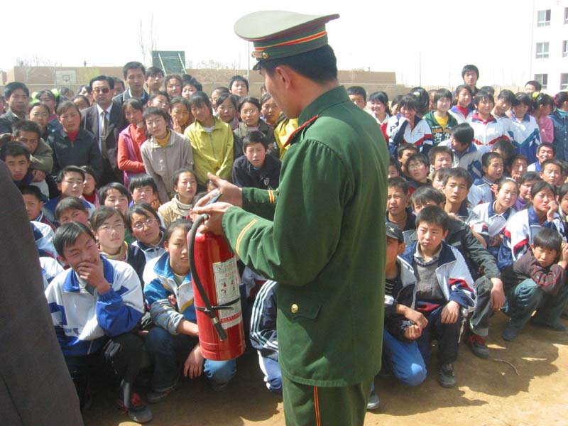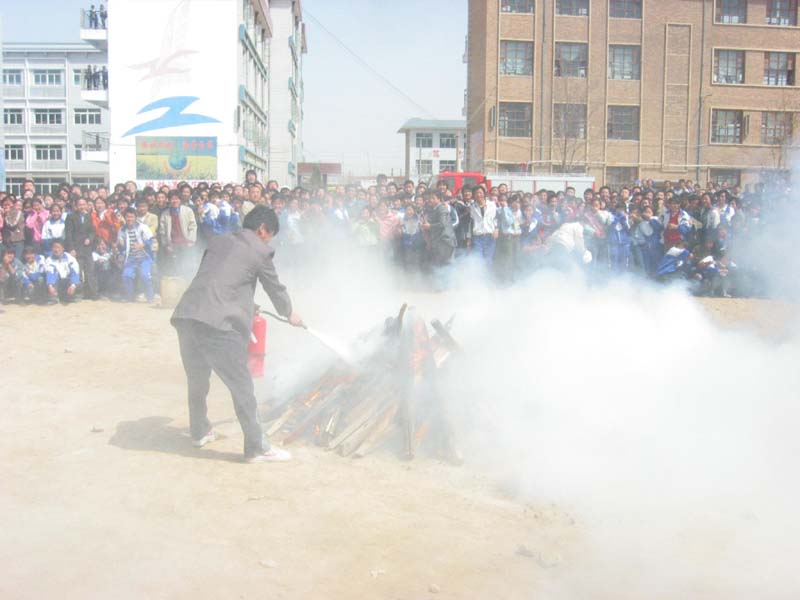 理论归理论,最终还需实践的检验,消防员叔叔在操场的空地上燃起一堆大火,虽然离我们比较远,但熊熊的大火仍威逼着我们,脸上感觉一阵阵灼热,不禁在心里打起了寒颤。保卫处的安老师亲自展示了一番身手,灭火器喷出的干粉迅速弥漫住火焰,大火很快就被扑灭了,可我们的安老师也变成了一个白人,惹得同学们哄堂大笑。