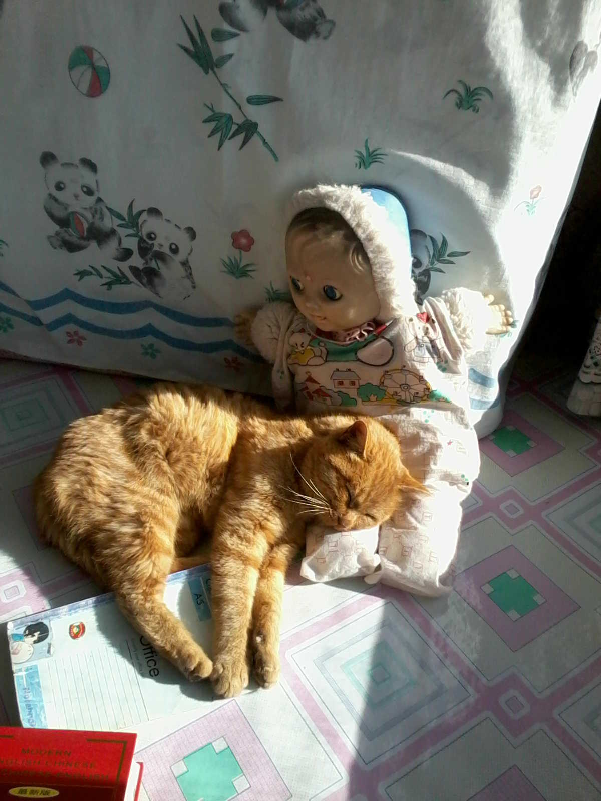 别看这个手工制作的布娃娃,我们都很爱她。你看她身上的衣服都是我和母亲给她缝制的。虽然没有商场上卖的那样精致。但我相信,她一定很喜欢。就连我家的小猫也躺在她的怀里,享受她的温暖。