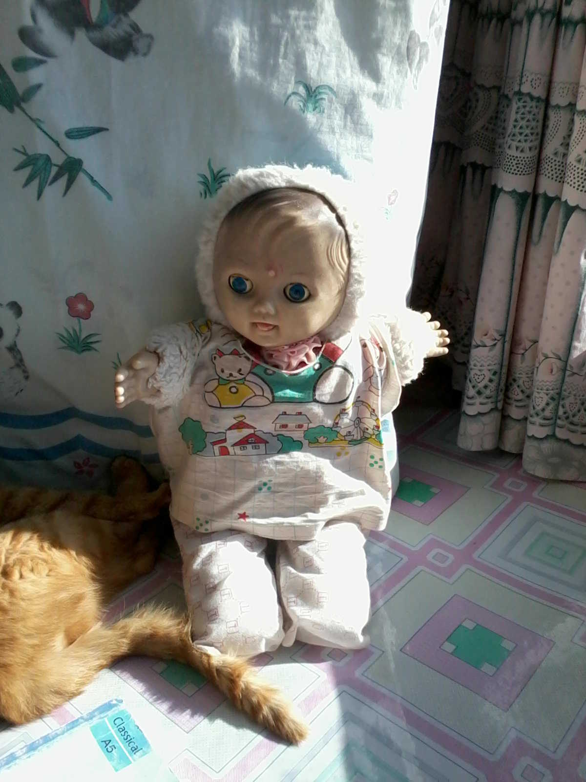 小时候,我想我的布娃娃就像成年人一样,也有自己的梦想。两只眼睛望着窗外的雪花。也许是在思考着什么吧;也许是想告诉我一定要努力,实现我的梦想吧;也许是……
