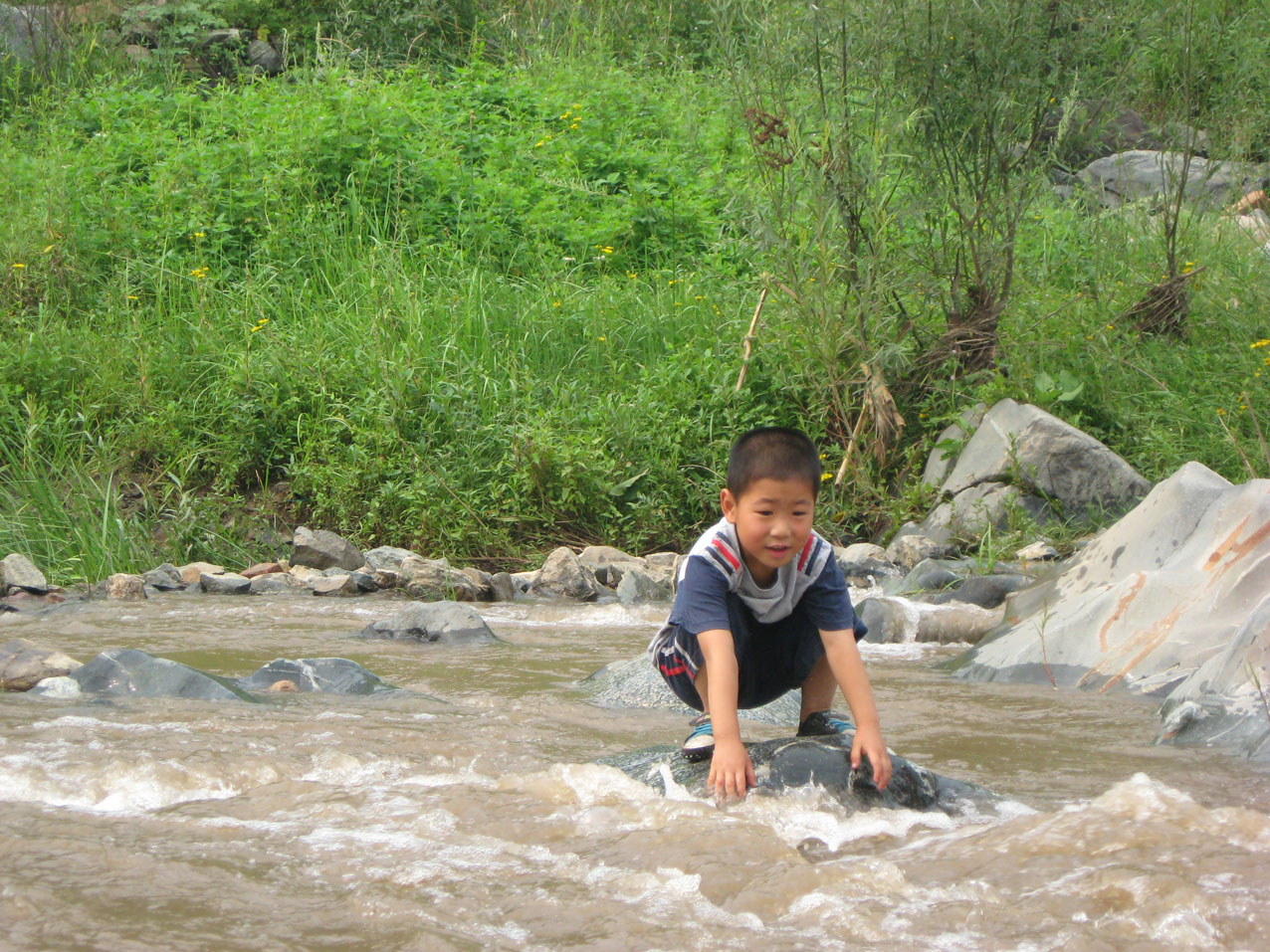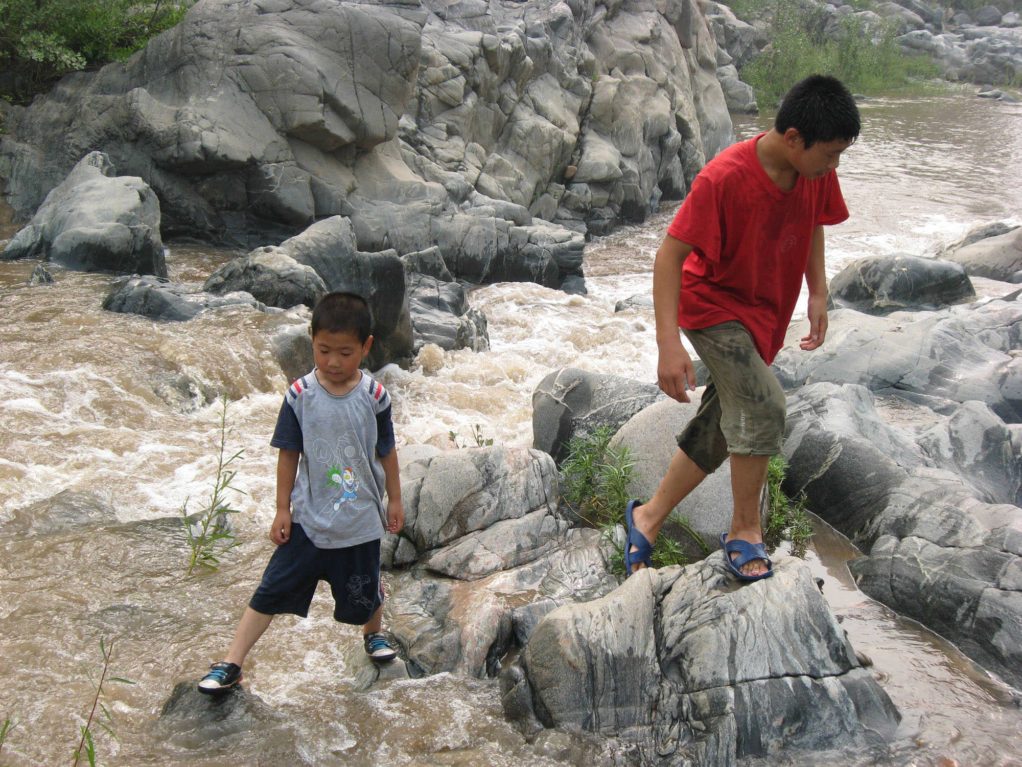 河水并不是一直都这样浅,到了雨季,降水越来越多。河水上涨,有时还爆发洪水。这时人们过河就有些不便。只能在石头上蹦来蹦去,从河的这面到河的那面。如果是洪水较大,人们去河的对岸只能是绕很远的路走水泥桥了。