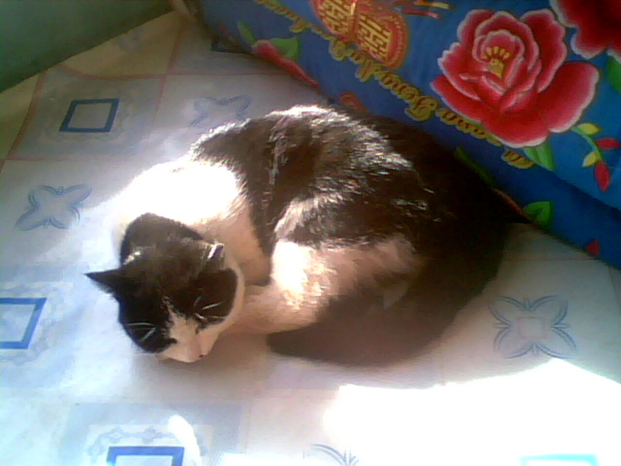 我家有四种动物。第一种是猫,它在四种动物中是最小的,也是最可爱的。我家的小猫身上有两种颜色。分别是黒色和白色。它长的胖胖的。睡觉的时候,安安静静的蜷缩在一边,很可爱。有时我忍不住的就去摸几下。