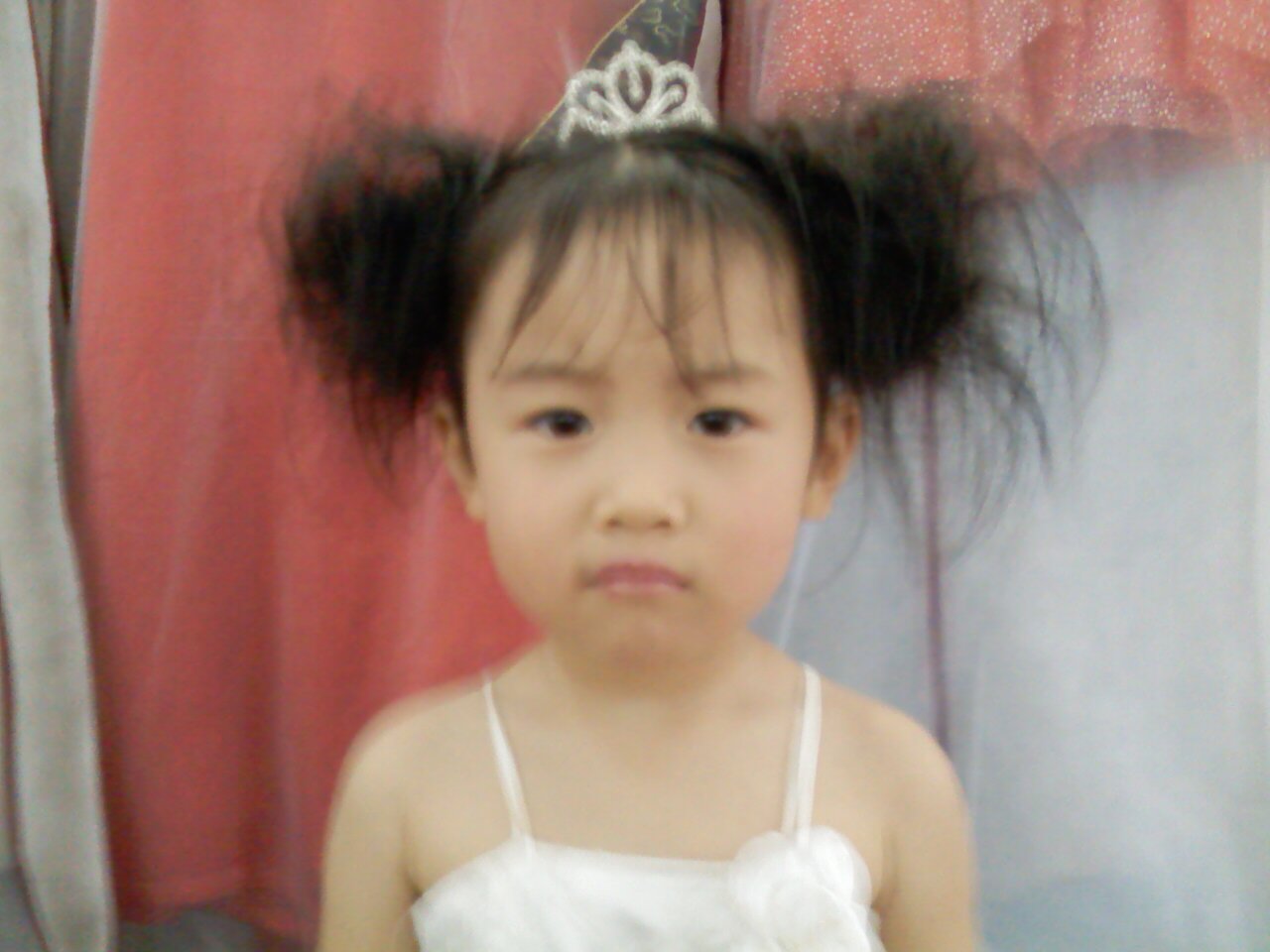 她有一头乌黑的头发,还有一张能说会道的的樱桃小嘴。一张白皙粉嫩的脸上,镶嵌着一双像黑珍珠般的大眼睛,显得炯炯有神,给人一种甜蜜的感觉。看她的样子可爱极了!
