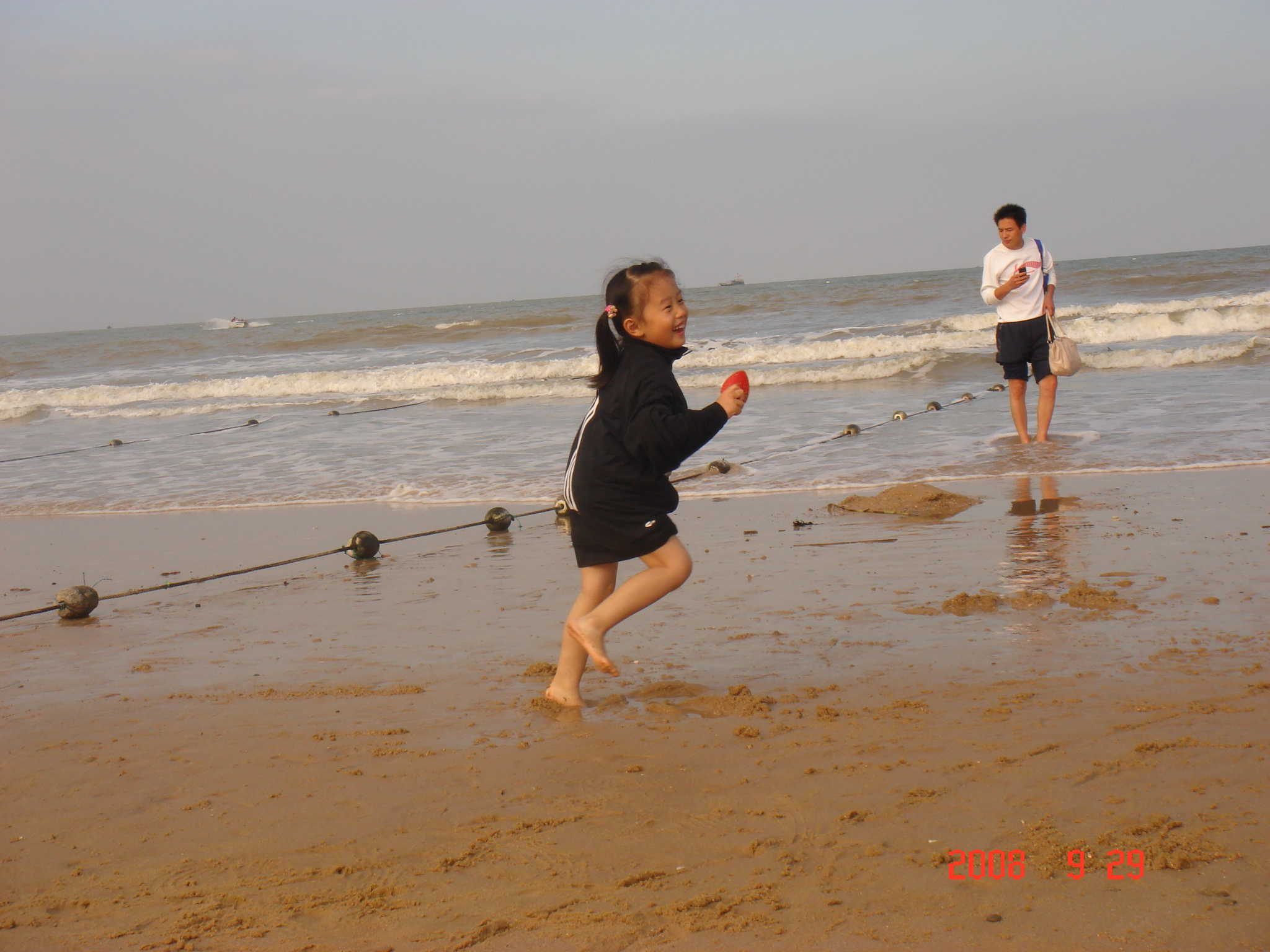 把我惹恼之后,她的疯劲就上来了,把鞋子一脱,就在沙滩上疯跑。我跑去追她,没想到一出脚就了贝壳,摔了一个狗吃屎,刚才的泥塑装,又上演了。哎!我咋这么倒霉呢?你看那小屁孩,不仅不来帮我。还在那里哈哈大笑,还笑的那么欢。哎哎哎,我这个妹妹让我怎么说呢?