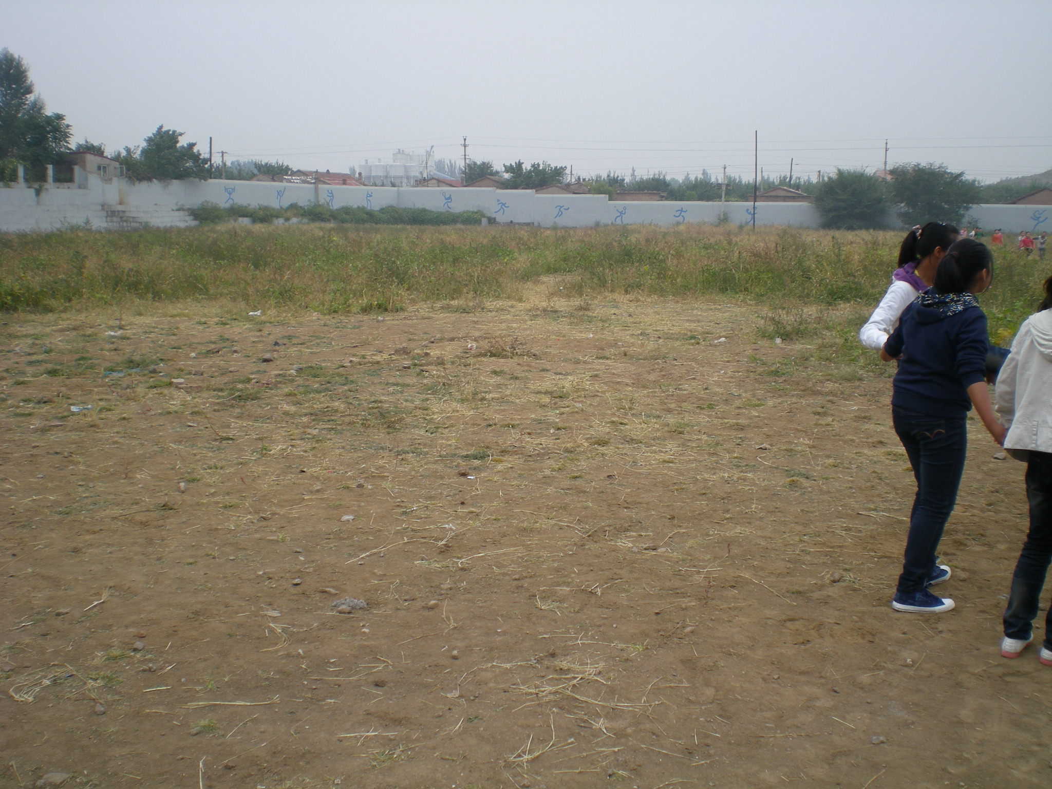 每次上体育课,老师让我们在"草场"上跑圈,老师说这样可以踩死一些草,这一招还真有效果,经过两三个星期,我们便在"草场"上开辟出了一条跑道。