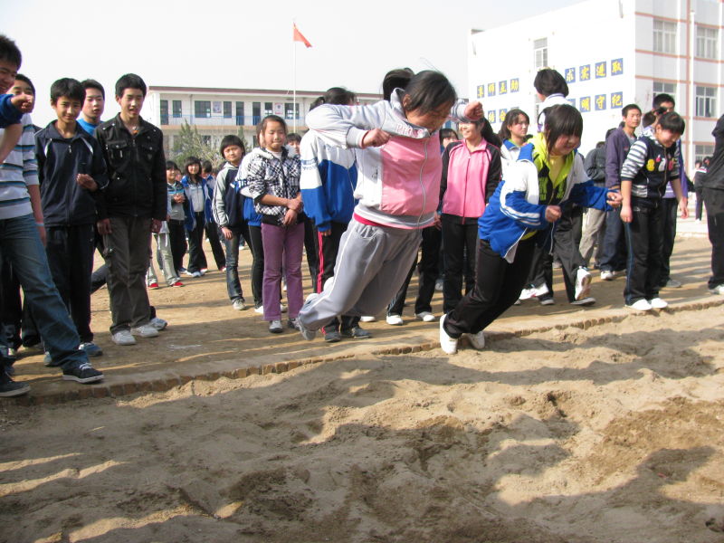 我们有时还跳远。比比谁跳的更远,我们尽力向远跳,有时进步,有时退步。跳远锻炼了我们的协调性,腿部肌肉,使我们更加强壮。