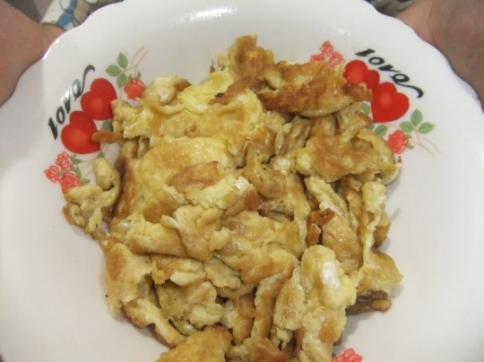 正当我炒鸡蛋时妈妈回来了,我端着自己炒的鸡蛋开心的对妈妈说:"妈妈,快尝尝我自己炒的鸡蛋吧。"妈妈说:"好呀。"