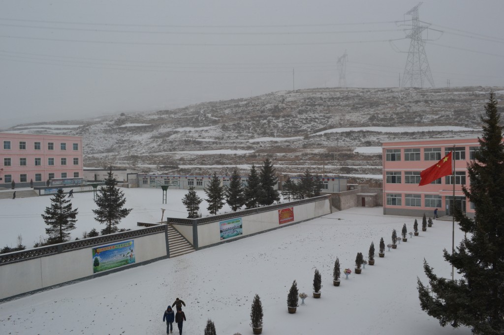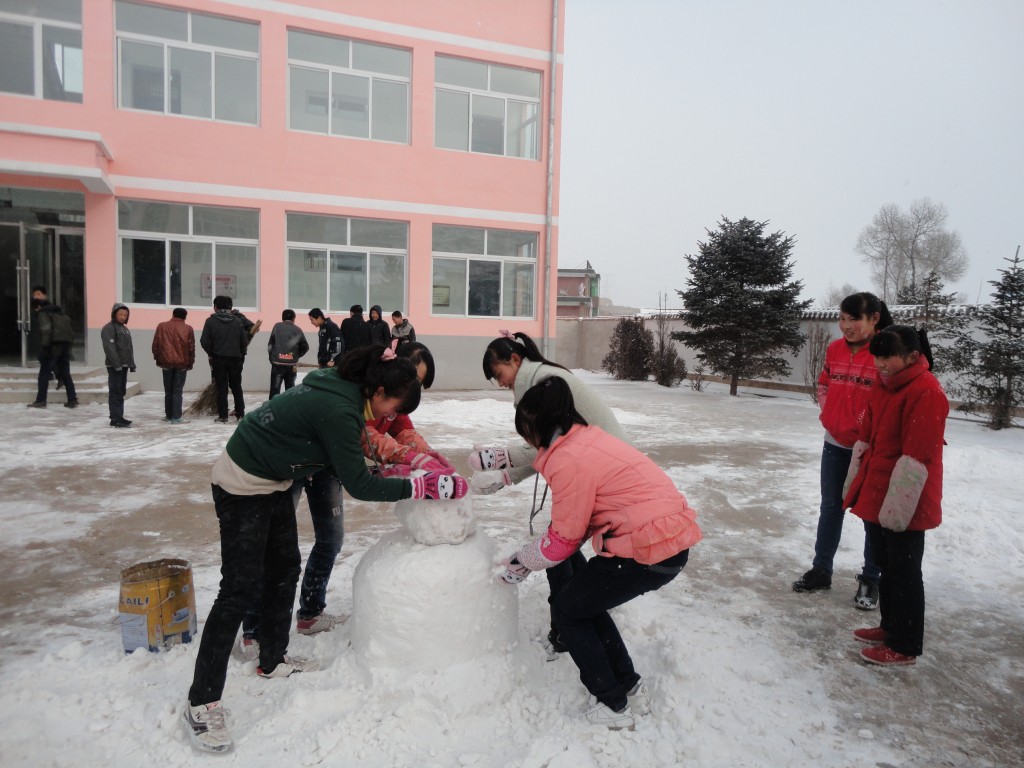 看,同学们正在校园里打雪仗呢。你一把,我一把,你追我赶,你嘻我笑,好生热闹。哎,老师在干什么呢?噢。原来是在欣赏雪的美,在欣赏沉卧在雪中而香甜入睡的大山的美。