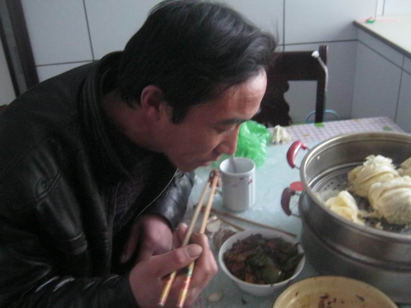还有吃肉,不吃饭时他总说不吃肉,而一要是遇到有肉菜时,一边说起他的口头禅"妈死不如赖活",一边大口大口地吃得满嘴油光。