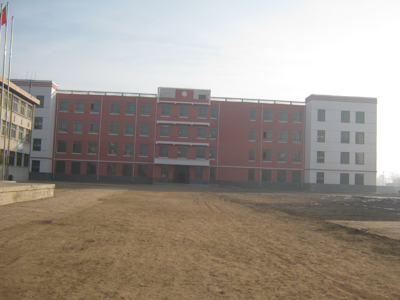 学校是我们的家, 不管他是崭新的还是破旧的,她都是我们的家。我的学校很大很大,一进校门就能看见主席台上飘着一面红旗子,前面就是教学楼,后面是花园和教师办公室,最后面是学生宿舍和食堂。这个教学楼已经有几十年了,都是旧房子,在这些旧教学楼旁边,就是我们的新教学楼了。