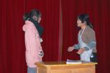 幼师一年级两位女同学的相声说的太棒了,她们妙语连珠,动作挥洒自如,一人拿一把扇子,说的有声有色。其他节目表演也很精彩,2小时的汇演很快就结束了,很感谢学校举办的《弟子规》文艺表演,从中我们也知道了很多,也学会了很多。