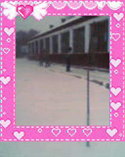 在宿舍的东南方有一个圈形花圃.它是一个三层的用红瓷砖砌成的花圃.夏天在这个花圃中有各种植物,虽然到了冬天它们都变黄了,枯萎了.但下雪时,雪花落在上面时它们就苏醒了.站在上面看时,你会发现它很像一个生日蛋糕.近处看时里面的植物就像一棵棉花植物.总之它很美!