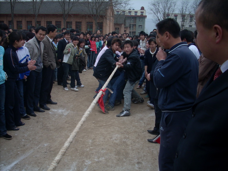 在周围同学和老师的激励下,所有参赛同学都咬紧牙关,使出全身气力,团结一致,拼命地拉呀,拉呀.此时同学们的集体感一下子体现了出来,他们那种不胜利决不罢休的劲头令人感叹.比赛进行了两节课的时间,整个过程呐喊助威声不断,场面令人感动.这次活动加强了班级的凝聚力,也增强了同学之间的友谊,我们希望今后多举行一些类似的活动.
