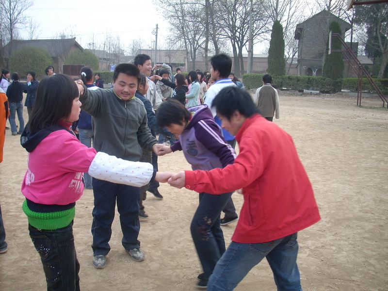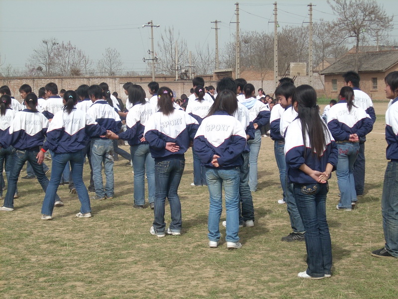 在老师的再三要求下,同学们才很不好意思的拉起手来,青春的风采需要四人为一组,刚开始,同学们动作很生硬,再加上羞涩,难以配合,根本就跟不上节奏,每一个节拍中只要一人动作出错,那么大家就要重新开始,所以很多同学嫌太难,都有放弃的想法.