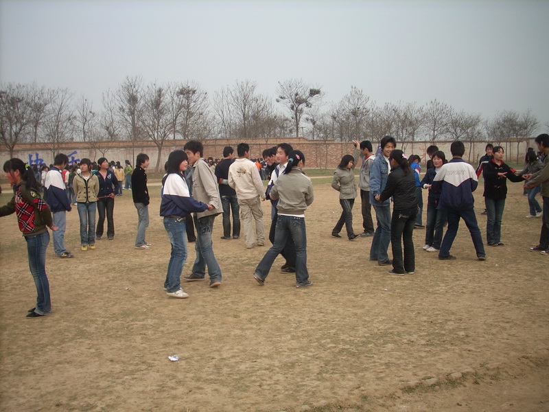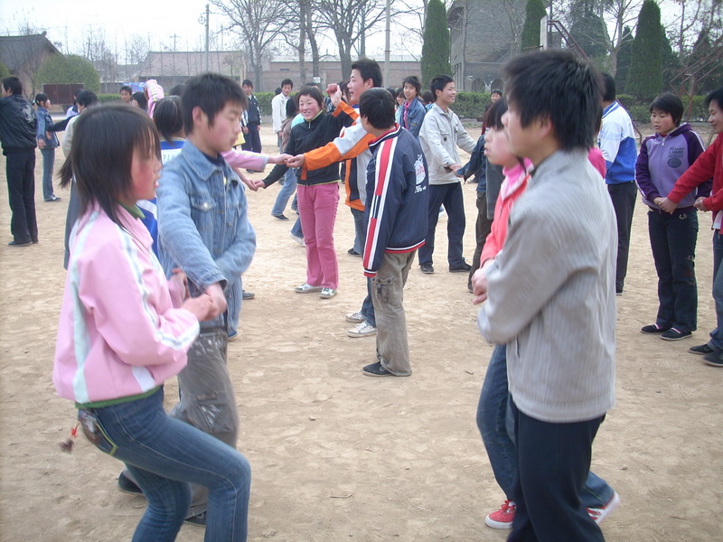经过一段时间的艰苦训练,大家的动作逐渐有了眉目,原来那种拘谨的表情也放松了,他们有的主动的四人组成一组,很开放的拉起手来,动作娴熟,真正地跳出了他们的青春舞姿.