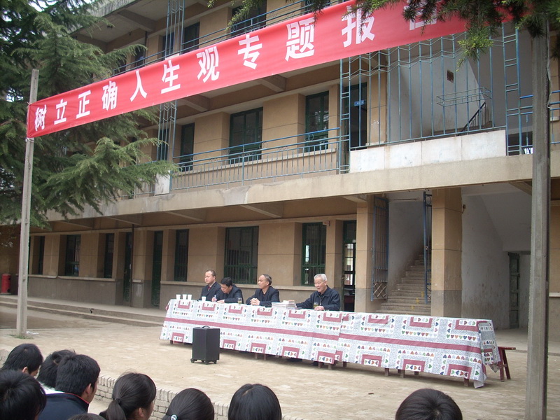 学校在星期三上午,集合全校师生召开了一次"树立正确人生观专题报告会".作报告的是学校安基会主任,原我区民政局孙局长.孙局长已经是六十多岁的人了,但他精神矍铄,谈吐诙谐幽默,他刚一上台,就博得全校师生的热烈欢迎.