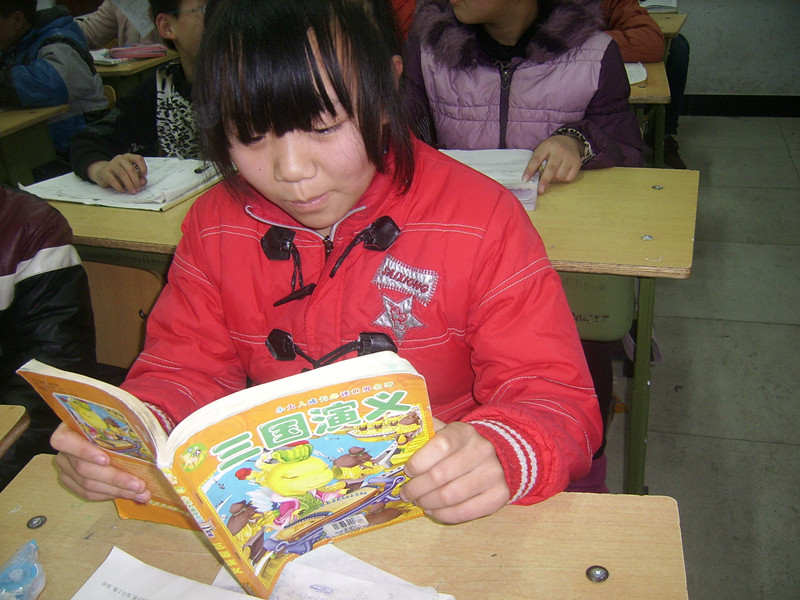 俗话说:头发长见识短。可她虽然头发长,但是见识不短。读书是她最大的爱好。《水浒传》《三国演义》等各类图书她无一不知,一谈起书,她便打开了话匣子。听那如顺口溜的语言,听得让你晕头转向,可她却还津津有味地谈着。这不,图书角的书又被她抢购一空。她那沉甸甸的书包装满了知识。她的笑容像百合花一样的灿烂。