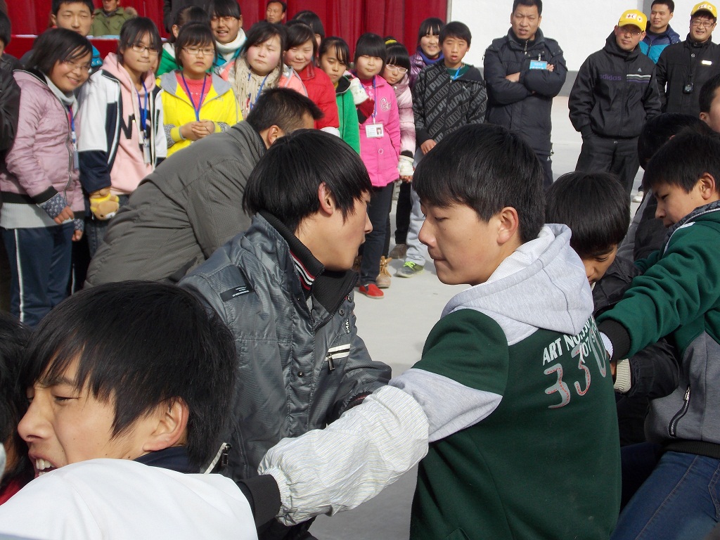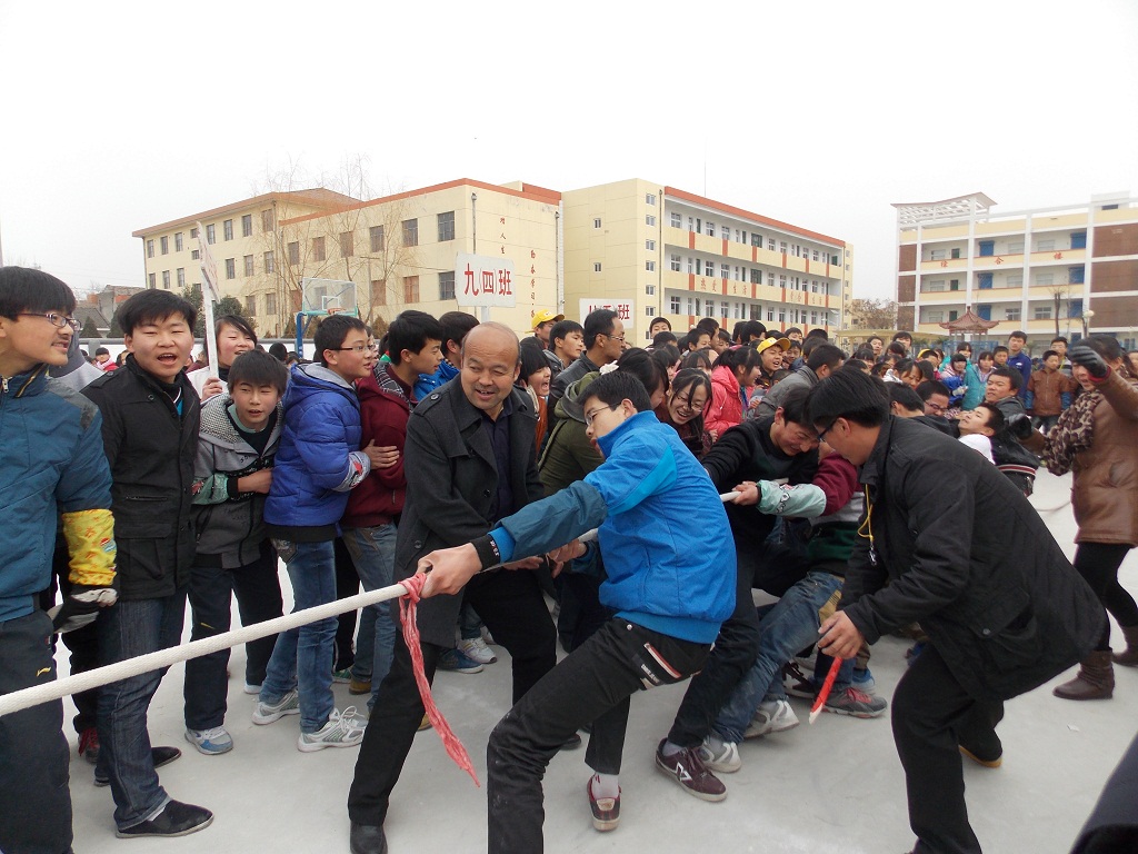 看!赛场上运动健儿们挥汗如雨。赛场下各班同学们声嘶力竭,以自己最大的努力奉献着自己的一份力。多冷的天气也阻挡不住他们火热的激情。这天也似被同化了,也变得火热。伴随太阳的徐徐升起。运动会也因此进入高潮。九年级的男子拔河开始。首先出场的是我们班和九四班。