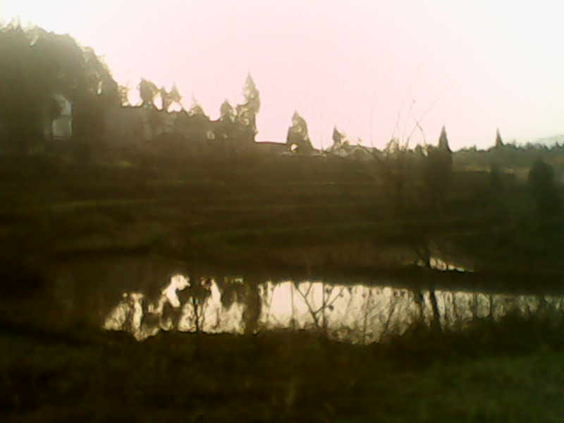 未被收割的水稻秸秆,整齐的立着,像是寸把长的头发。但在秸秆下面却生长着一片片的青草,像是一团朦胧的烟,在天地间升腾扩散。草很密,足以覆盖所有的枯枝落叶,青色的一片空透无瑕,就像是初春那样,抬头忽然听见树枝间,有三三两两的鸟雀叽叽喳喳,田埂的枯草下也有嫩芽在萌发,十二月的天气又好像是初春三月一样。