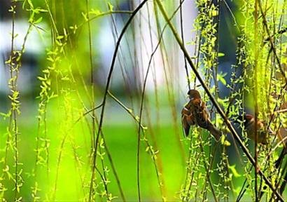 春天到了,柳树姐姐在春姑娘魔法棒的指挥下,苏醒了。身上慢慢长出了柳芽弟弟,它顶着问号打的小脑袋,慢慢地在长大,经春雨的洗涤,经太阳的照耀,经雷公共的抚摸,慢慢地感觉到外面世界的精彩,它不禁拍手叫好。