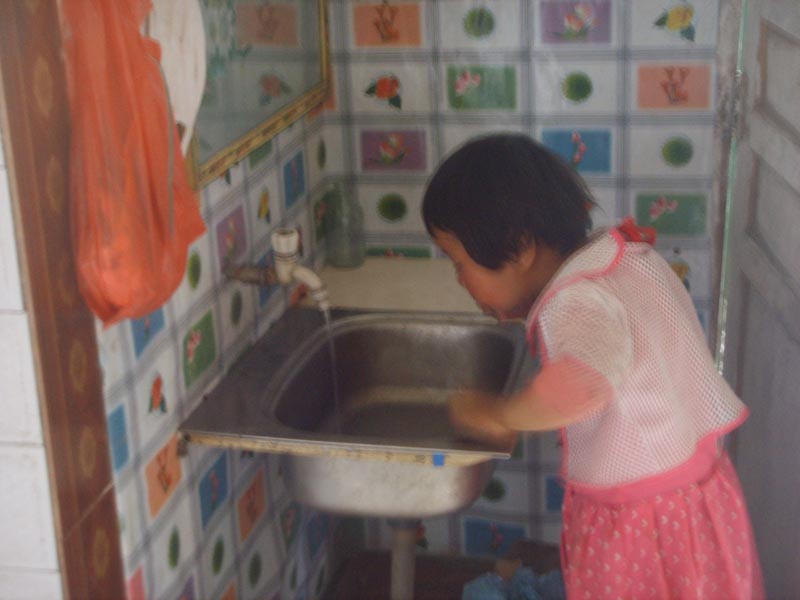 终于自来水接来了,以前我们把用过的水重复使用,直到水发臭才倒掉。而现在一眼清泉似的水龙头流进了我们家,弟弟妹妹洗头洗脸以前的泥脸蛋,变成现在白净的脸蛋。以前上学穿的是脏衣服,现在却赶干干净净。