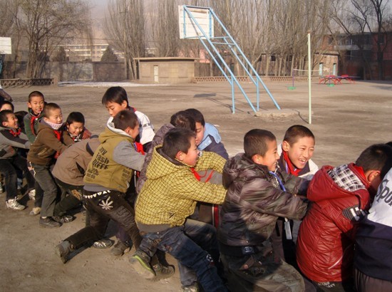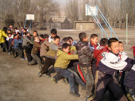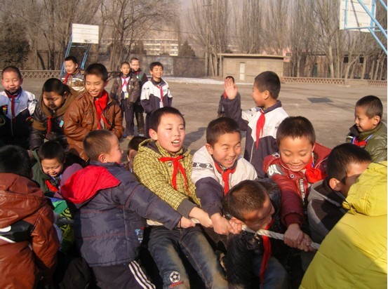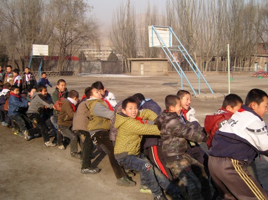 星期三下午第二节课间,学校组织了一次拔河比赛,全校师生都参加了,比赛一共分四场,男女生各一队。同学们纷纷在操场上欢腾起来了。