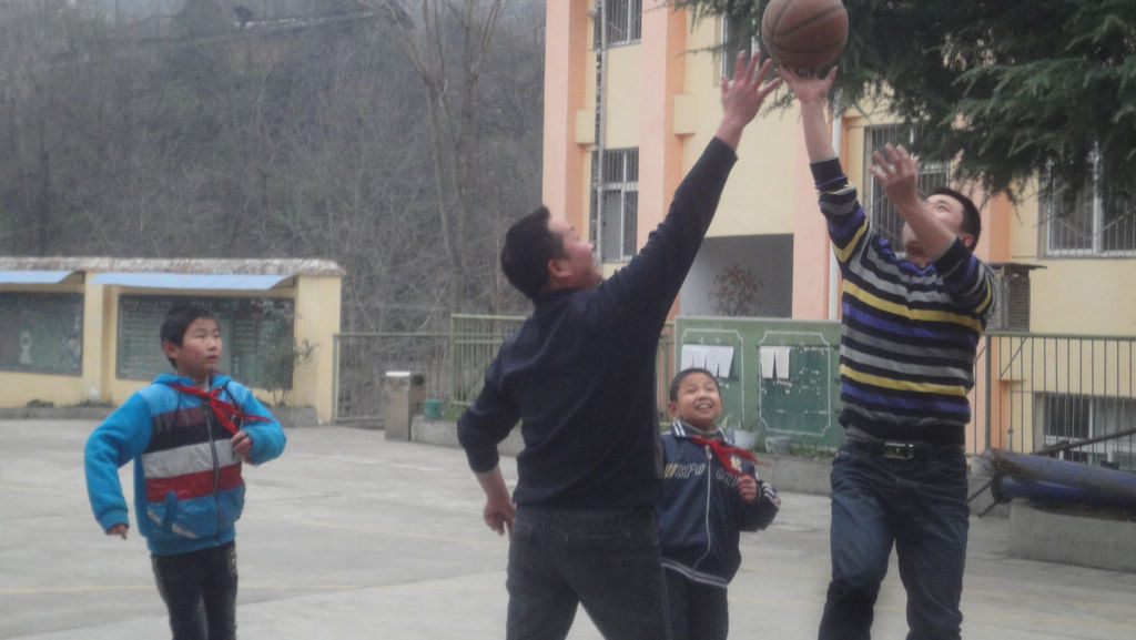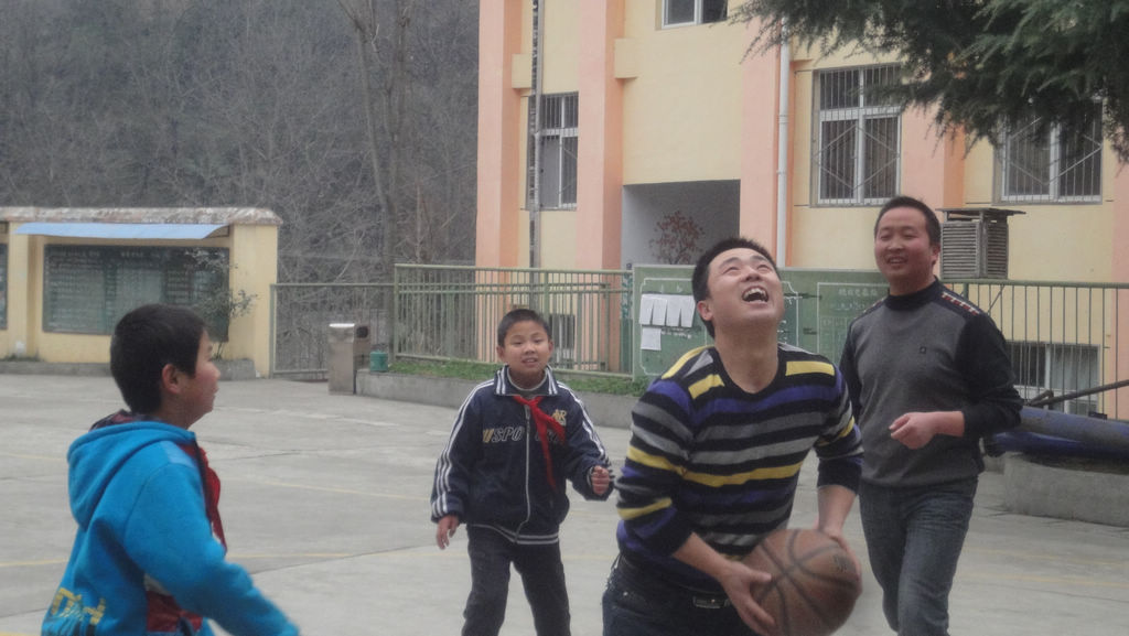 刘老师还是一个运动健将,平时他喜欢穿休闲服,在课外活动时间他喜欢打篮球。那一次,老师们组织了一场篮球赛,其中就有刘老师。他打球的时候生龙活虎,头球命中率很高。
