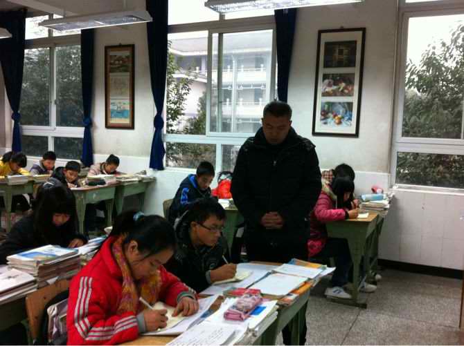 大喜老师课余的时候性格很随和,很爱笑,而且他的笑容还非常的开怀,但一上课,他就像变了一个人。他上课非常的严肃,对我们也很严厉,如果我们上课有人开了小差或是回答问题声音比较小,他一定会给你来个大嗓门的"河东狮吼",刚开始时我们都会被吓着,不过慢慢的我们就明白他是在提醒我们注意了,现在他上课我们都没人再开小差了。这就是我们的数学老师——阳光、幽默又严谨的大喜老师。